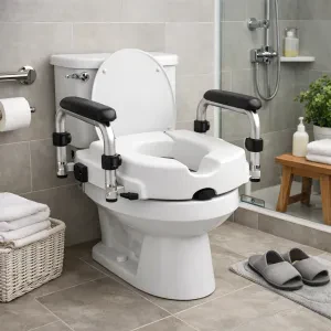 First up, we have the Medline Raised Toilet Seat. It’s super easy to install and gives you that extra height you need without sacrificing stability. Plus, it has armrests to help you feel secure as you sit or stand. The padded armrests add a touch of comfort, making it perfect for extended use.